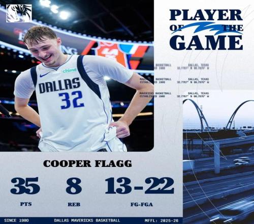 弗拉格全场砍下 35+8 的豪华数据率队赢球,成为 NBA 历史上最年轻 35+ 球员。