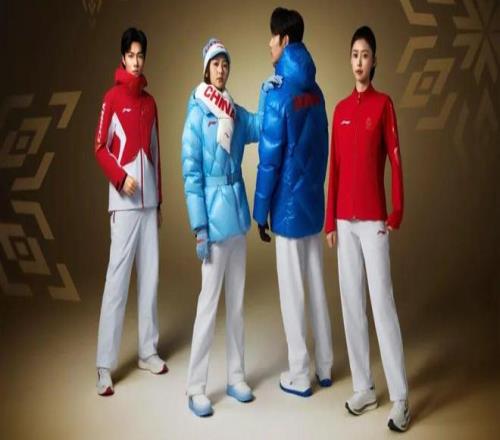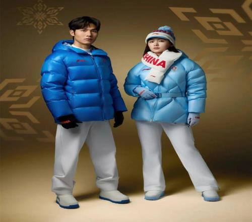 服装的主色调是冰穹蓝与雪山白,围巾和帽子上印着CHINA的英文,辨识度极高。