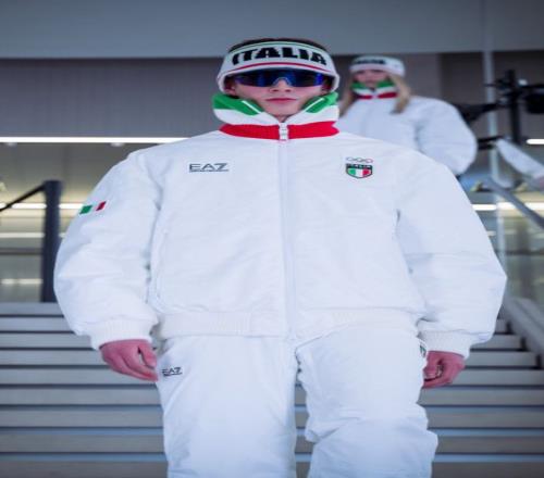 所以阿玛尼巧妙地将国旗放到了袖口、衣摆和帽子上。