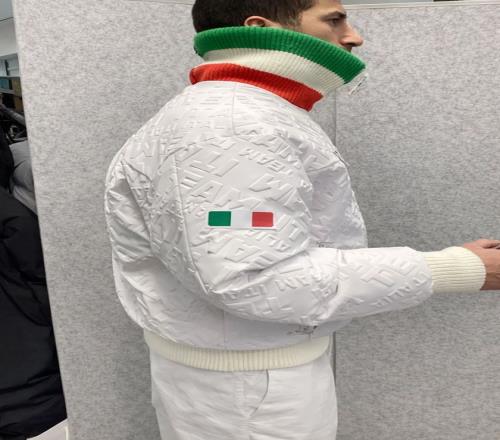 开幕式时,意大利队员穿的是一套灰色混纺羊毛工装夹克。