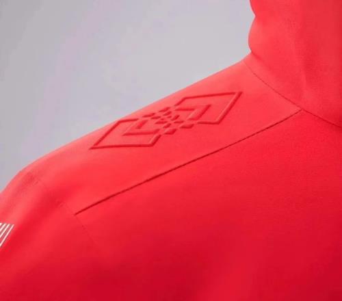 蒙古队服由蒙古本土羊绒品牌Goyol Cashmere设计,以13至15世纪蒙古帝国的传统“德勒”长袍为原型,保留了高立领、前襟重叠、两侧开衩的经典廓形。