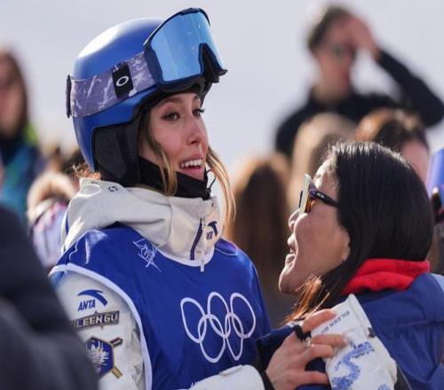 谷爱凌在比赛中鼓励来自澳大利亚的对手英德拉·布朗,这位16岁的女孩将谷爱凌视为她的偶像