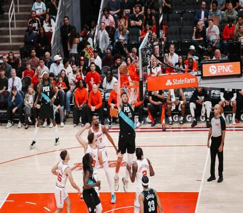 易地再战,申京与朱霍勒迪在禁区对轰,克林根2罚全中,阿门空接扣篮还以颜色。克林根打成了2+1,杜兰特、阿门相继冲击篮下取分。格兰特2罚1中,亨德森轰进3分球,申京罚进1球,阿门抢断后完成暴扣。朱霍勒迪上篮得分,阿门2罚全中,谢泼德上篮得分,罗伯特威廉姆斯补扣命中。芬尼史密斯外线取分,朱霍勒迪上篮打进,乌度卡请求暂停。