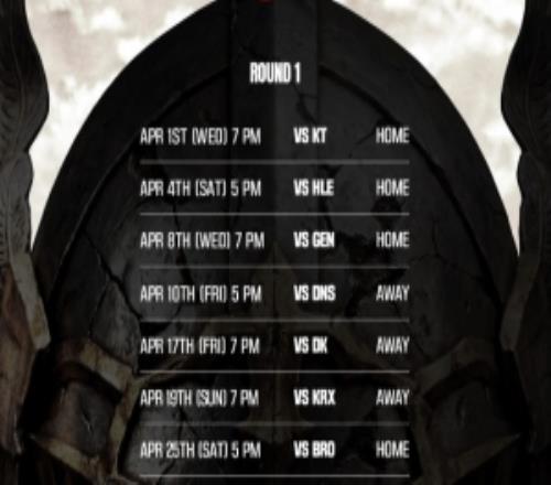 LCK常规赛首轮4月4日、4月8日接连迎战HLE、GEN