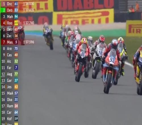 世界超级摩托车锦标赛荷兰站SSP组决赛第一回合,第二位出发的张雪机车53号车手瓦伦丁·德比斯最终获得第四名...